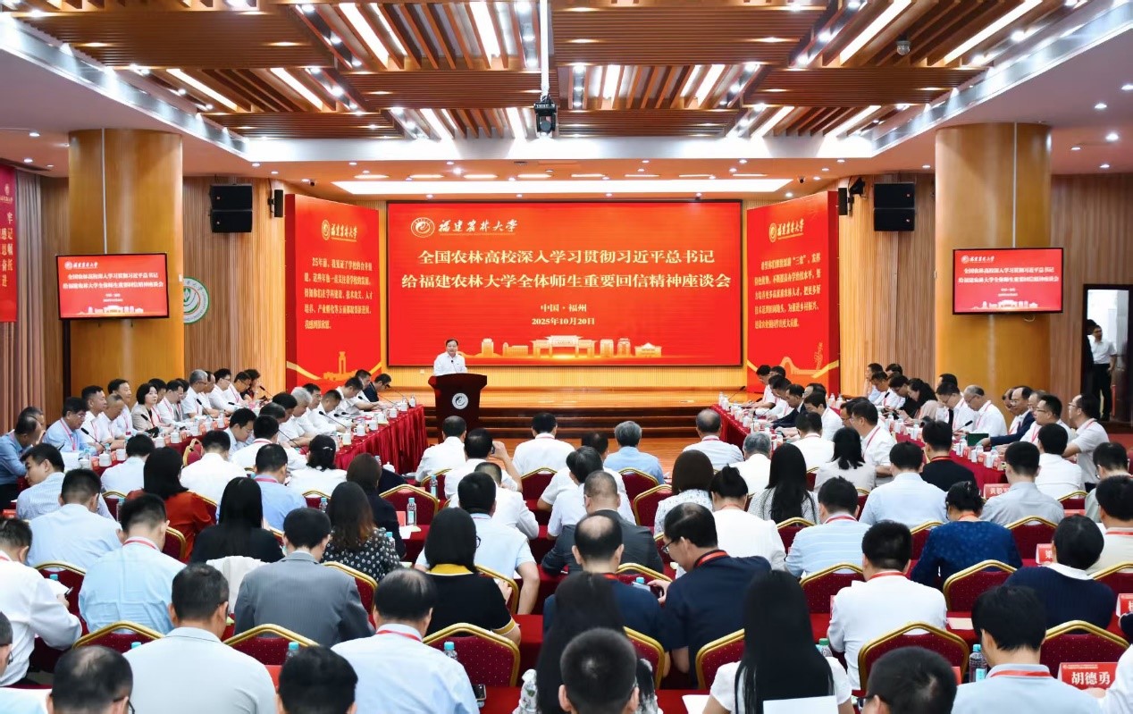 2025年10月20日,“深入学习贯彻习近平总书记给福建农林大学全体师生重要回信精神座谈会” 在福州举办。我校原副校长冯家勋带队参会并做交流发言,我院副院长杨艳琼陪同参会。