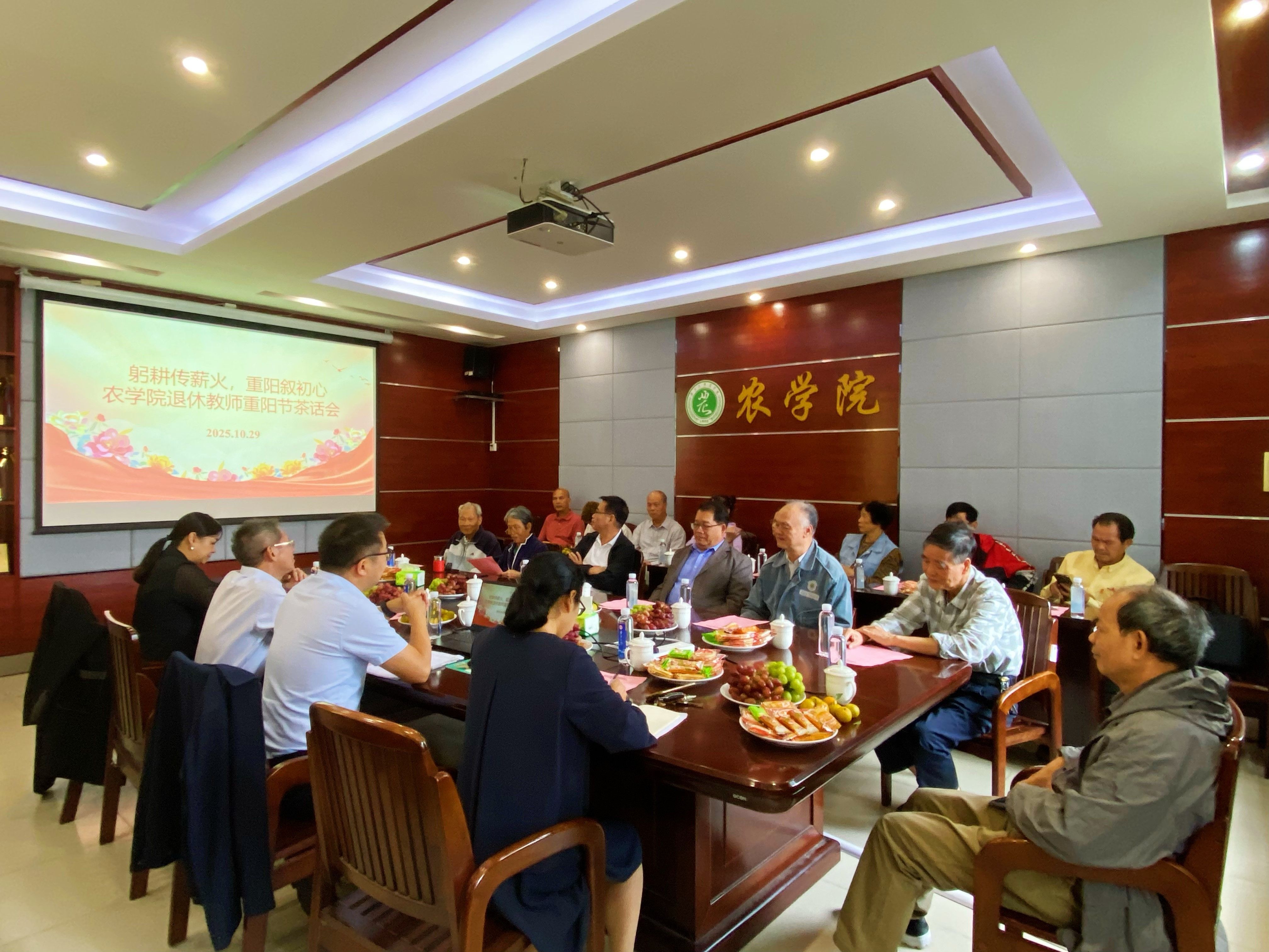 岁岁重阳,今又重阳。为传承老教师深耕农科的育人情怀,汇聚退休教师智慧,共话学院发展蓝图,10月29日,学院以“躬耕传薪火,重阳叙初心”为主题,举办退休教师重阳节茶话会。十多位退休老教师欢聚一堂,与学院在任领导共忆执教岁月、畅叙三农情怀、展望学院未来。