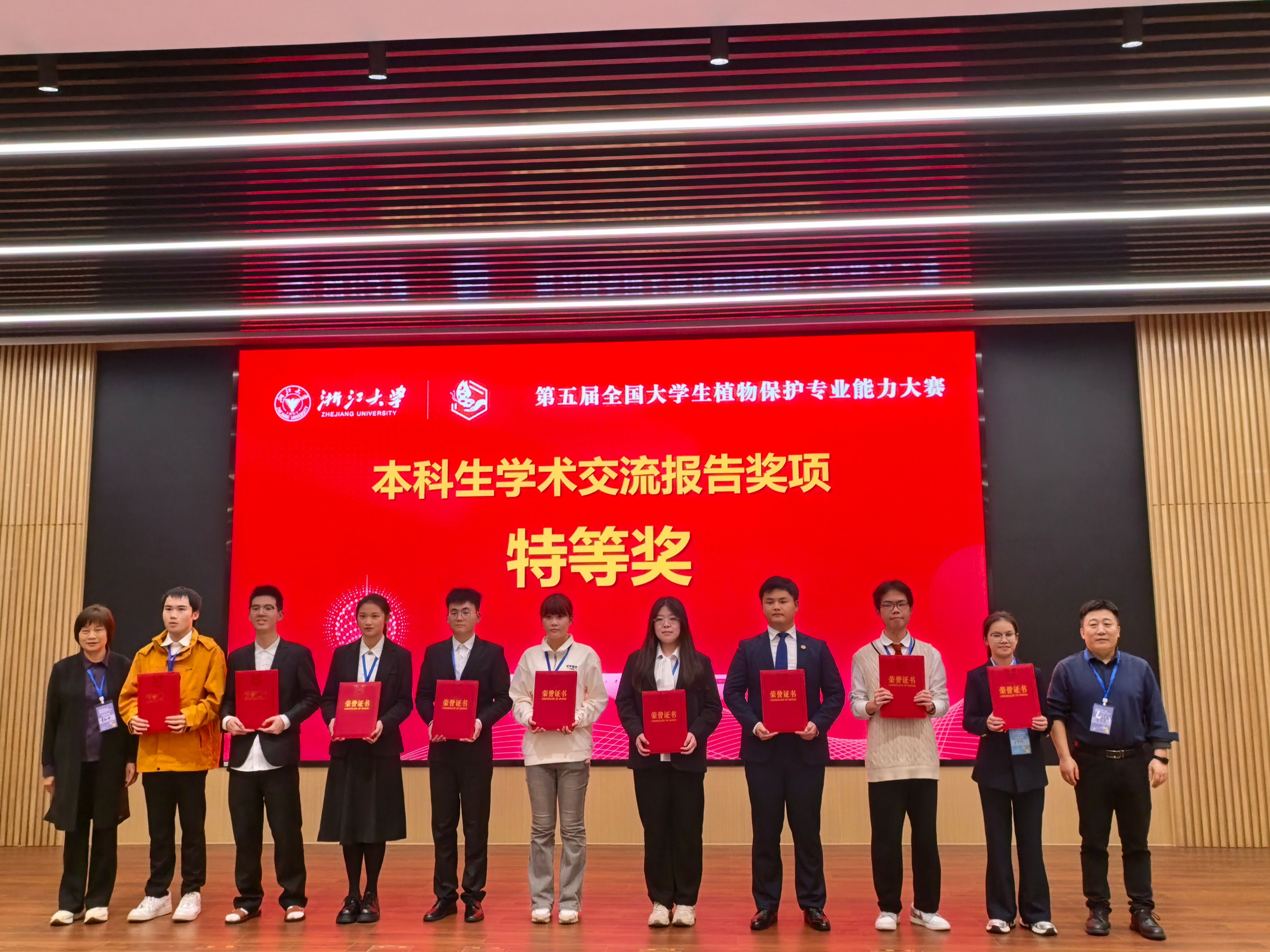 2025年11月7日-8日第五届全国大学生植物保护专业能力大赛在浙江大学成功举办。广西大学农学院代表队在本次大赛中取得了历史性突破,斩获单项特等奖2项、一等奖2项、二等奖2项、三等奖4项,以及团体二等奖。