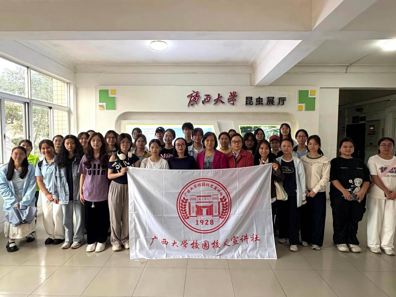 为拓宽学生讲解员知识视野,加强专业技能学习,12月2日,广西大学图书馆组织校园校史全体学生讲解员前往我院昆虫展厅开展参观学习与讲解经验交流活动。此次活动旨在通过实地研学与同行对话,深化团队成员对自然科学知识的理解,并进一步打磨讲解技巧,提升综合服务素养。
