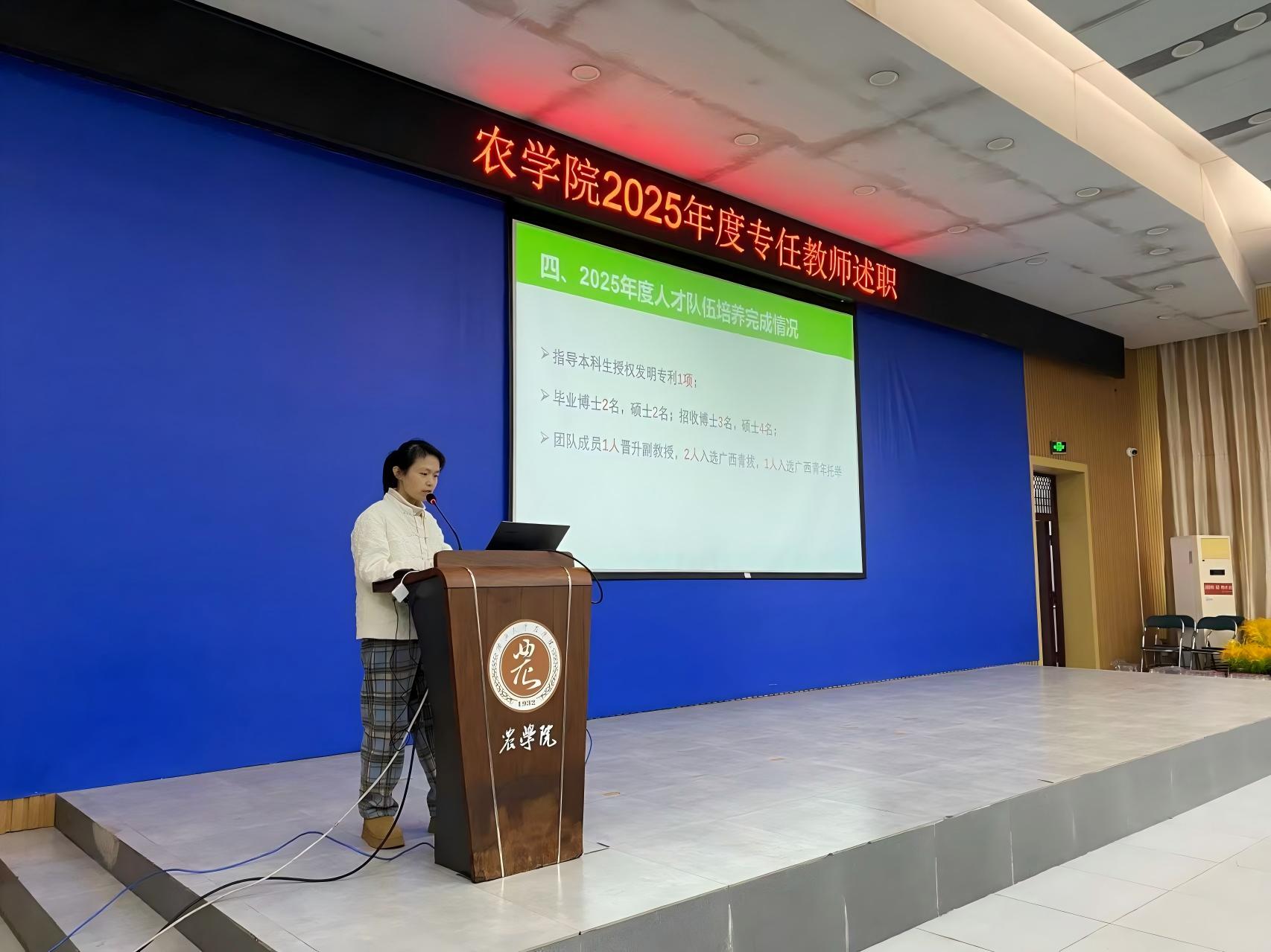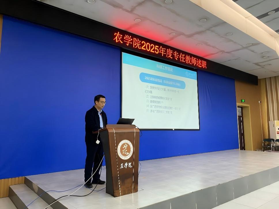 为全面检验教学科研工作成效,压实立德树人根本任务,1 月 15日上午,广西大学农学院分两组同步开展 2025 年度专任教师述职考核工作。学院党委书记袁涛、院长张积森作为考核工作组组长分别主持述职会。