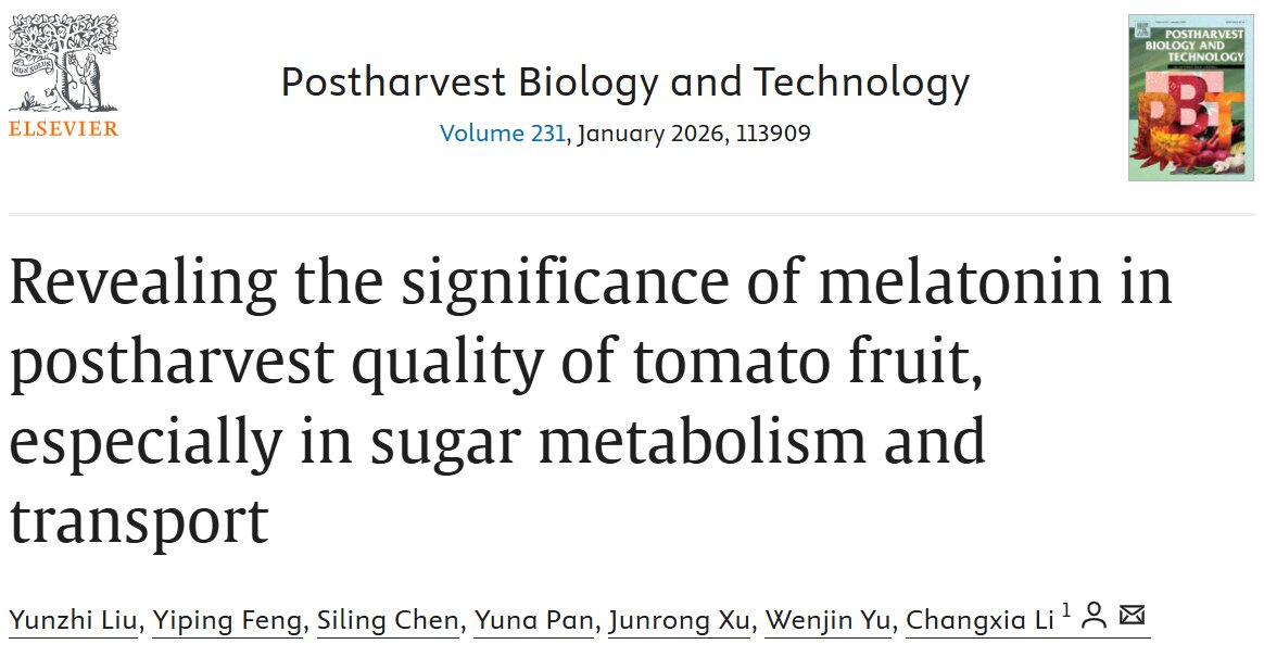 近期,广西大学农学院李昌霞老师课题组在Postharvest Biology and Technology上发表了题为“Revealing the significance of melatonin in postharvest quality of tomato fruit, especially in sugar metabolism and transport”的研究论文。该研究通过综合运用主成分分析-隶属函数法与灰色关联分析,结合分子生物学手段,系统解析了褪黑素处理对三个不同番茄品种采后品质的改善效果,并揭示了其通过调控糖代谢与运输关键基因来提升品质的核心机制。